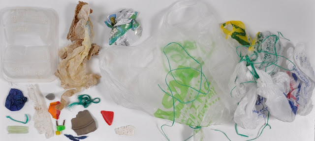 marine litter: large quantities of polystyrene, plastic cups and rope & line